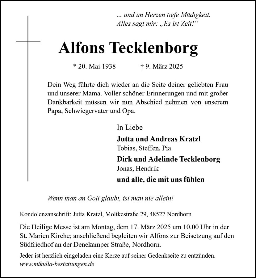 Alfons Tecklenborggestorben am 9. März 2025