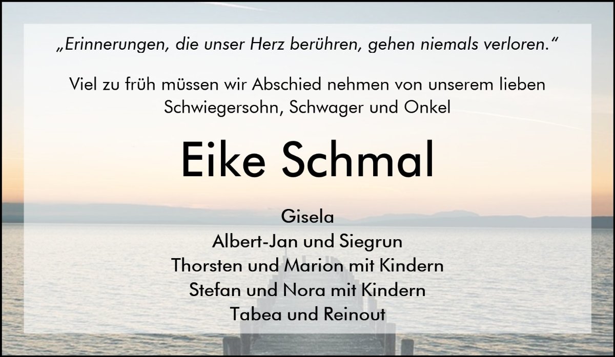 Deiner Frau, deinen Kindern und der Familie Schmal unendlich viel Kraft, Trost und Hoffnung in dieser schweren Zeit.