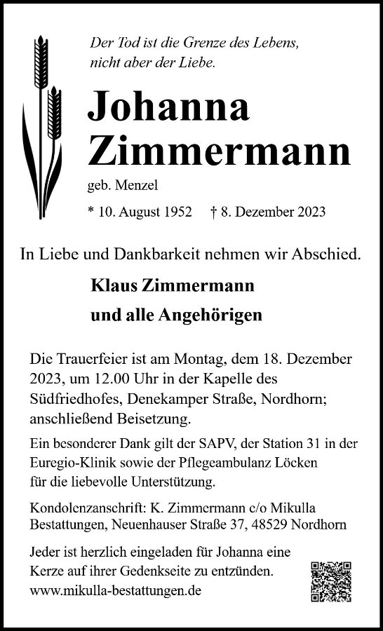 wenige Dinge im Leben sind so schwer zu ertragen wie der Verlust eines geliebten Menschen. Hannas Tod war für sie in ihrer schweren Krankheit sicher eine Erlösung und ihre letzte Reise wird sie ohne dich antreten.