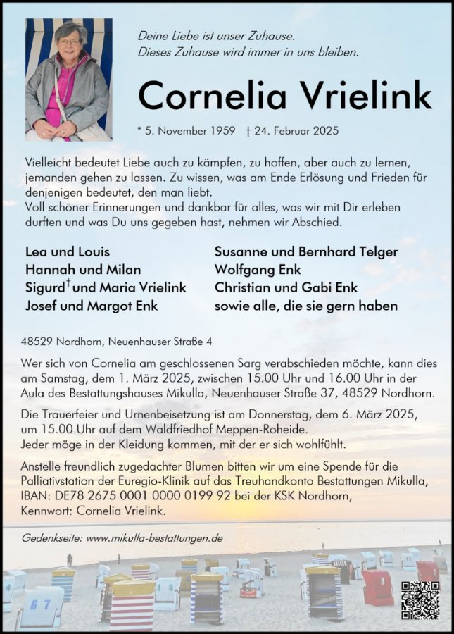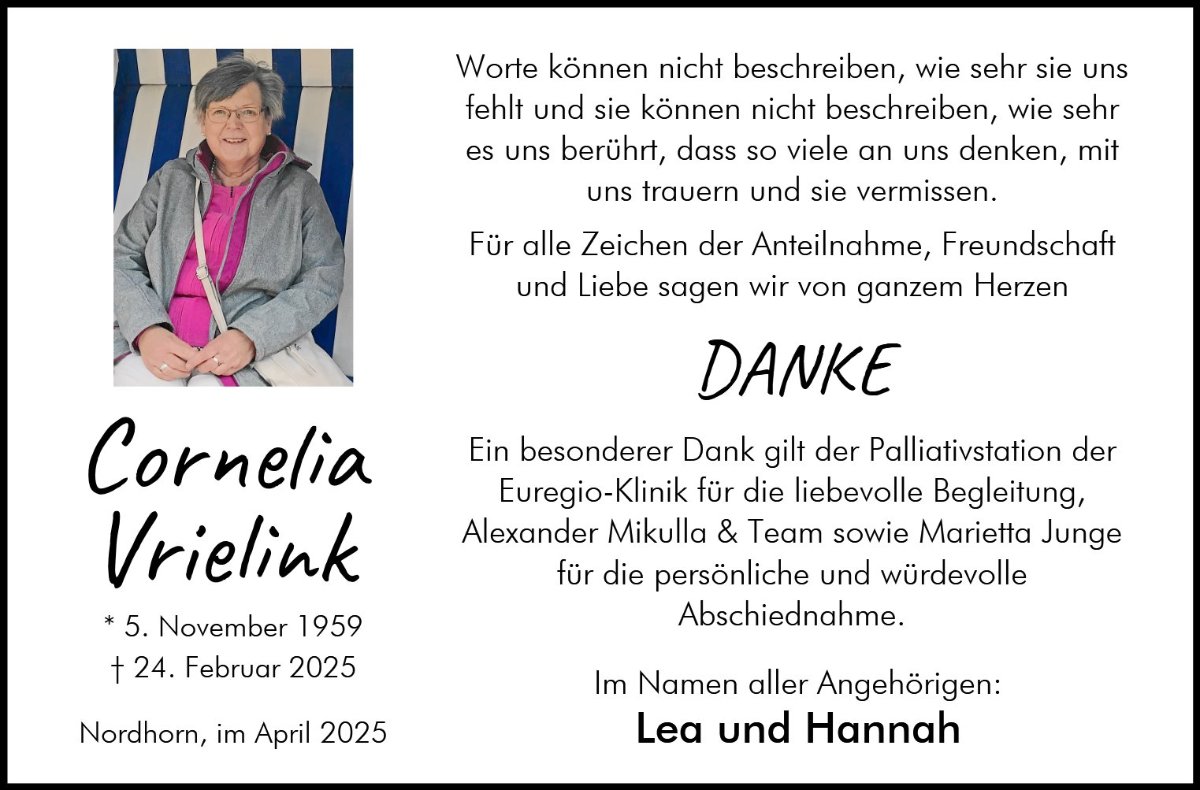 Ihr wart immer Cornelia‘s halt Sie hat Euch bis zum Schluss geliebt.